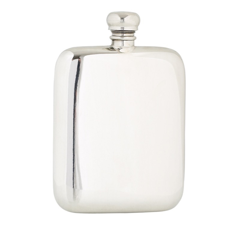 Finest handmade pewter flask with rounded edge.