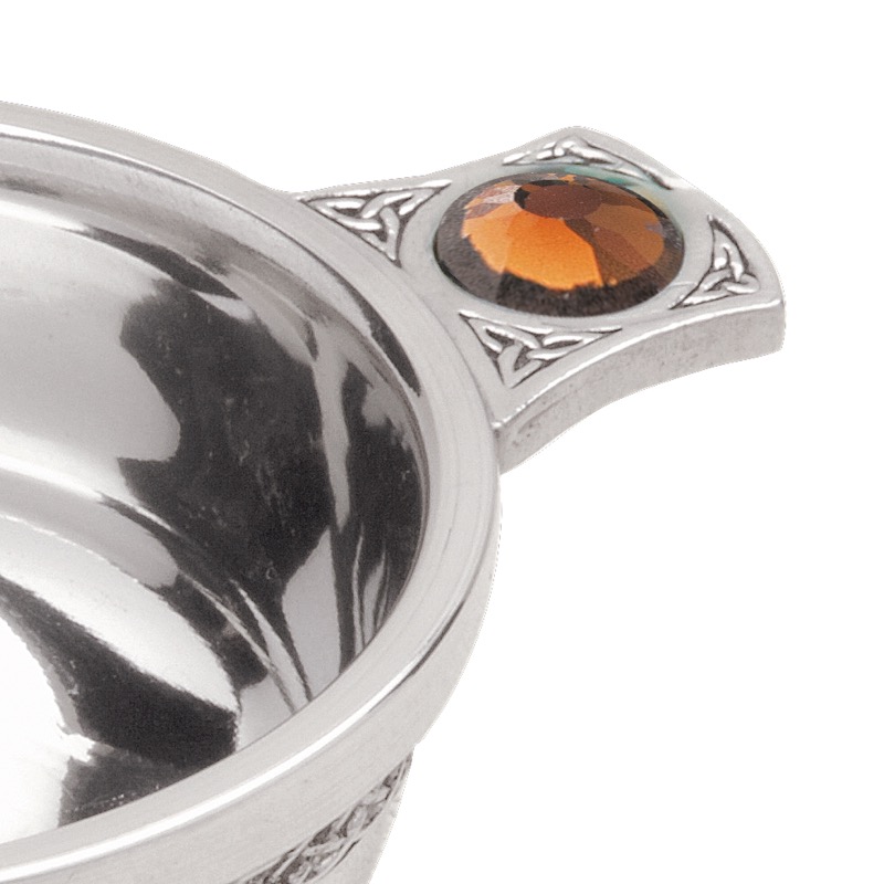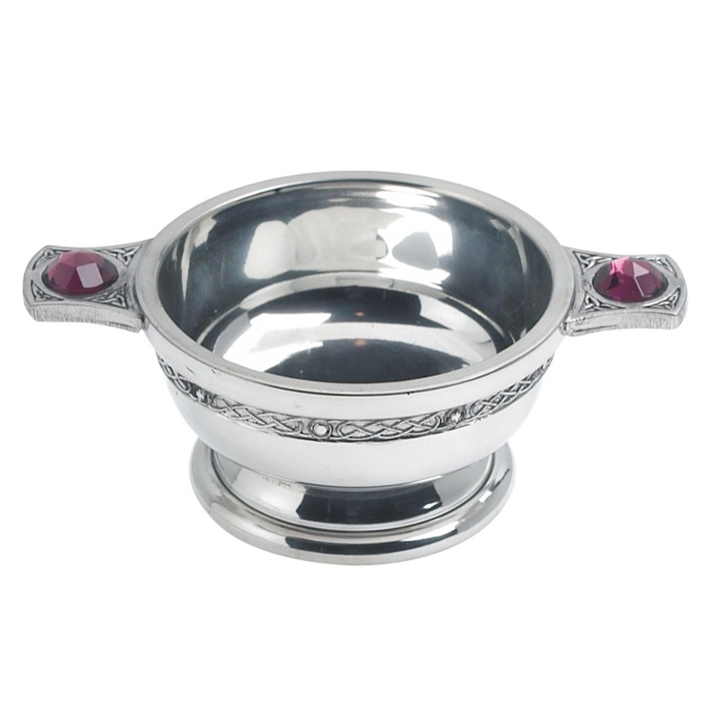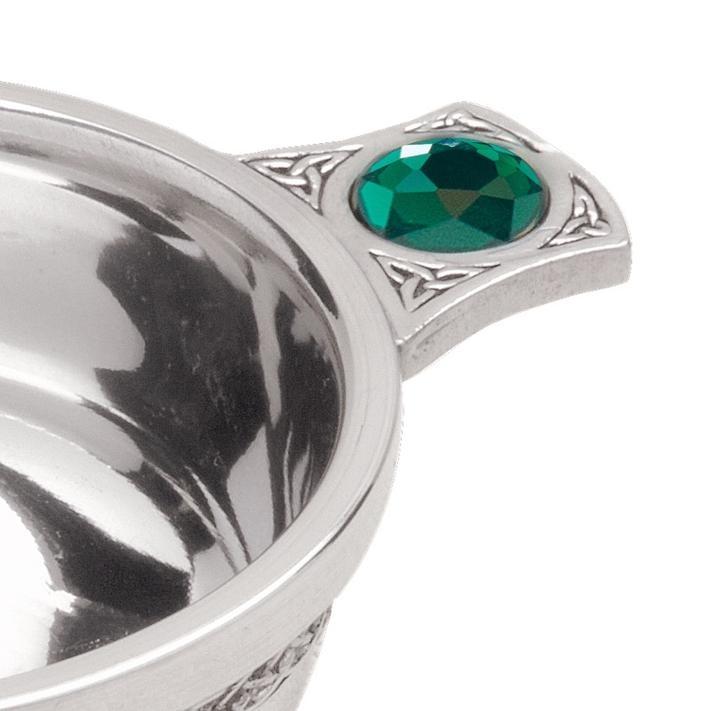 Celtic 3″ Polished Pewter Quaich with Coloured Stone.