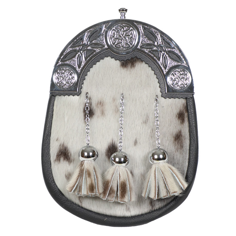 This elegant Dress Sporran is handmade and finished by a team of expert sporran makers and features a Celtic inspired cantle and chrome bells. Constructed using the highest quality skin it is the perfect accessory for your kilt and can be worn with evening wear to more formal functions. Choose from a range of leather and interior suede finishes.