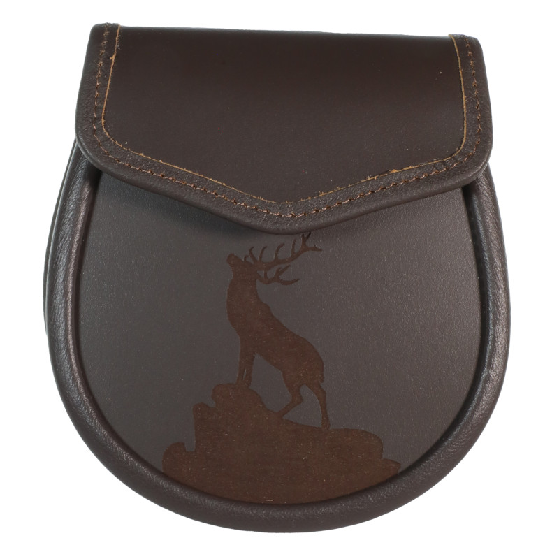 Traditional Leather Daywear Sporran handmade and finished by a team of artisan sporran makers. This sporran is simple in design and features a Scottish Stag to the body of the leather sporran.