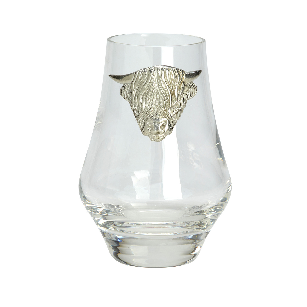 This whisky tasting glass is embossed with a Highland Cow in pewter.