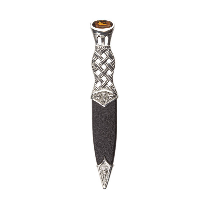 Lochy Polished Pewter Sgian Dubh with a Coloured Stone Top.