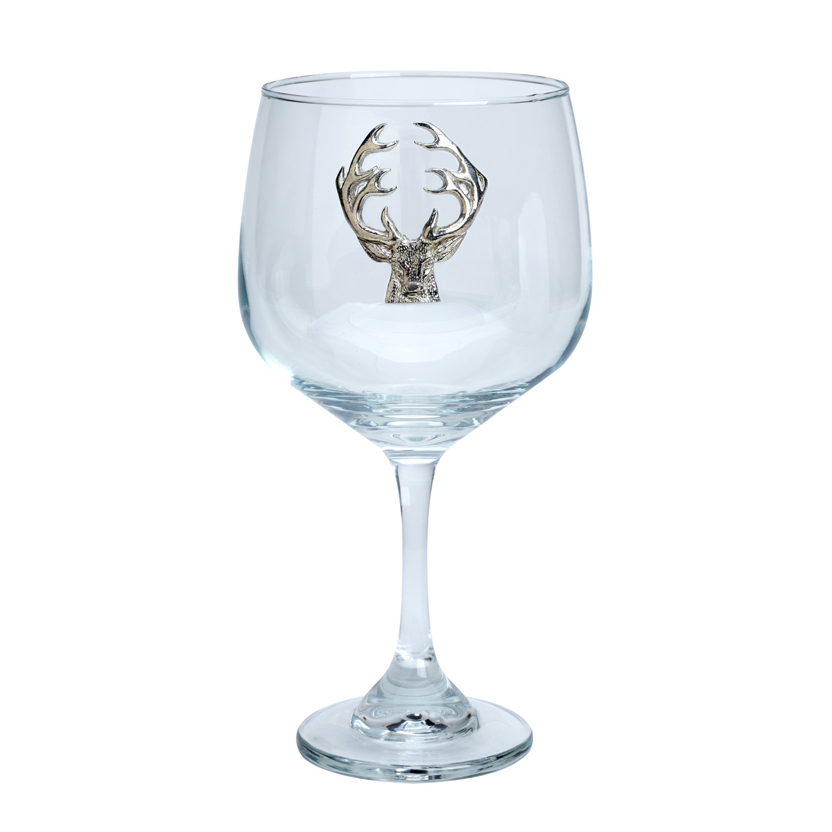 Finest handmade gin glass featuring an embossed Stag’s head in British pewter.