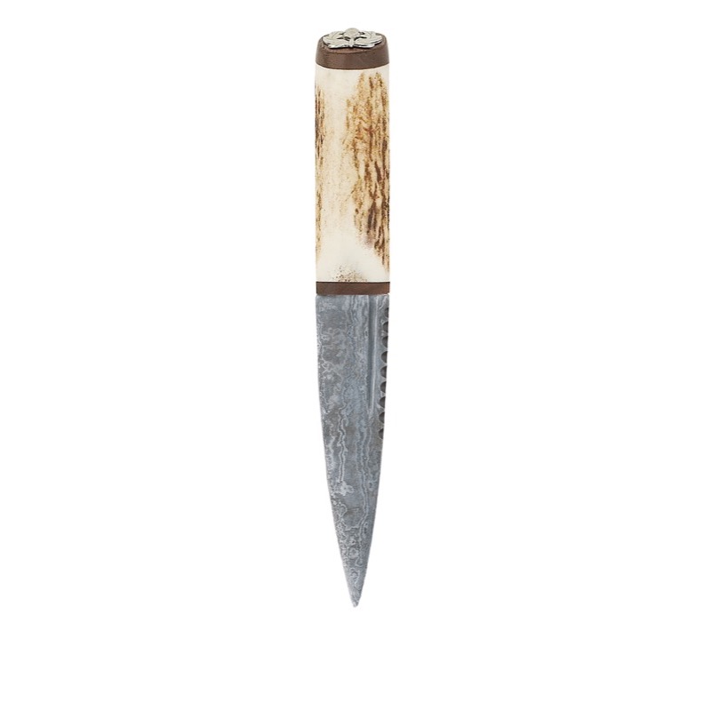 Scottish Staghorn Thistle Damascus Sgian Dubh with Brown Leather Sheath.